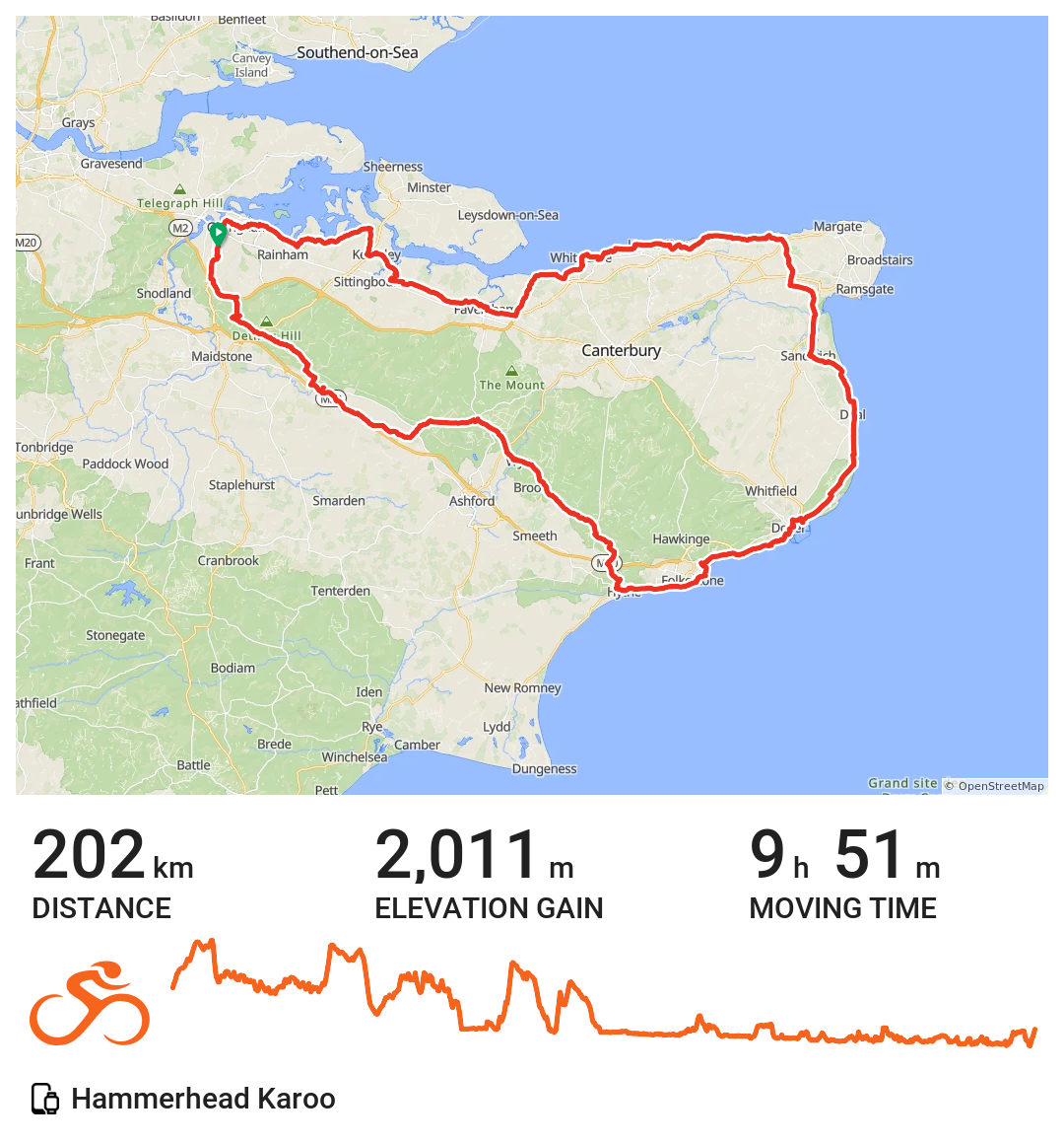 The weather was decent. I sometimes choose the wrong clothes in spring. Either too hot or too cold. Got it right for this ride. Sunny most of the day. But windy. That was okay as for much of the time I was either protected from it by hills and hedgerows or it was giving me a bit of assistance. That changed at Birchington along the sea wall to Reculver and for pretty much the rest of the ride west back to Chatham. All good exercise.